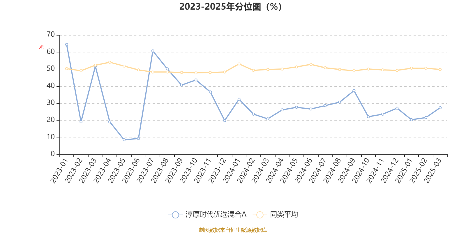 通过所选区间该基金净值增长率分位图,可以观察该基金与同类基金业绩比较情况。图为坐标原点到区间内某时点的净值增长率在同类基金中的分位数。